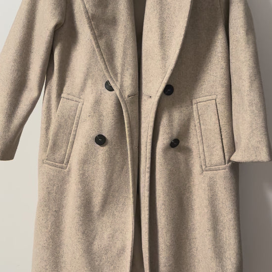 Elevate your wardrobe with this elegant beige coat, a timeless piece that combines sophistication and comfort. Crafted from soft, high-quality fabric, it features a classic tailored silhouette, perfect for layering over both casual and formal outfits. Its neutral tone makes it a versatile addition that complements any style effortlessly.